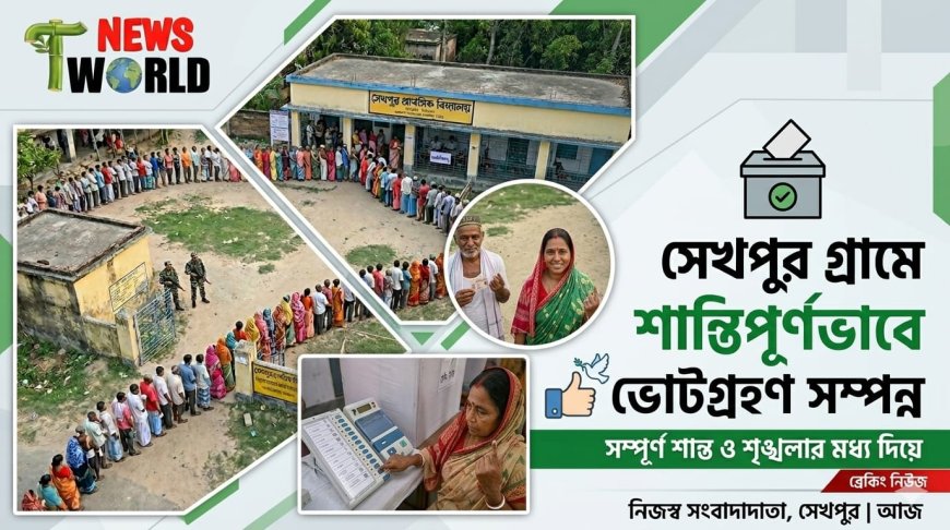 আজ সেখপুর গ্রামে সম্পূর্ণ শান্তি ও শৃঙ্খলার মধ্য দিয়ে ভোটগ্রহণ প্রক্রিয়া সম্পন্ন হয়েছে। সকাল থেকেই ভোটারদের মধ্যে উৎসাহ লক্ষ্য করা যায় এবং দীর্ঘ লাইনে দাঁড়িয়ে তারা তাদের গণতান্ত্রিক অধিকার প্রয়োগ করেন।